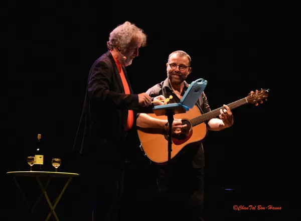 Des textes ciselés genre dentelle du Puy, de l’humour de premier, second et douzième degrés et surtout deux hommes de scène au charisme impressionnant. Deux drôles d’oiseaux se livrent sans retenue à une festive joute verbale, un combat à mots nus, phrases délicates et refrains sans cholestérol.