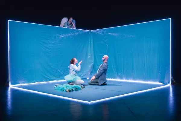 La Barbe bleue est un monstre dans la veine de celui de La Belle et la Bête : il est laid à faire peur, mais amoureux. Sa dulcinée n’est autre que la plus jeune des filles d’une maison voisine. C’est d’ailleurs ainsi qu’elle s’appelle : la plus jeune. Épris l’un de l’autre, ils s’épousent. Car c’est bien connu, les filles ne s’arrêtent pas à l’apparence physique. La Mère, dernier membre de ce trio infernal se veut rassurante : « En amour, tout s’arrange. Comme dans la vie, tout s’arrange. C’est bien connu. Non ? » Après l’ébouriffant Candide ou l’Optimisme accueilli au Parvis en 2023, nous retrouvons l’univers esthétique et singulier du metteur en scène : pop, coloré et surtout, joyeux !