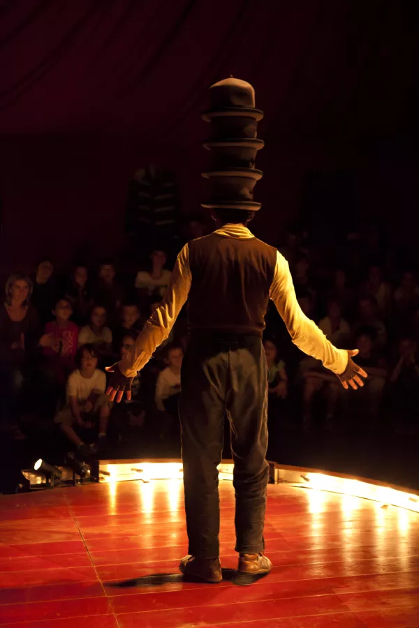 Prenez un (tout) petit chapiteau, un gradin pentu, ajoutez-y des rouleaux de tissus, des tas de chaussures et de chapeaux, des machines à coudre ou à autre chose, placez au centre deux circassiens entourés d’étranges personnages. Laissez la magie prendre pendant une heure, le temps que ce cirque miniature vous harponne, et savourez sans aucune modération.