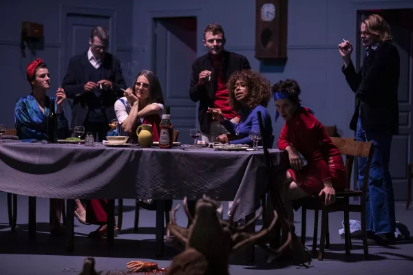 Ophélie n’est plus ce personnage mélancolique de la pièce de Shakespeare, qui dans un délire se jette dans une rivière, mais le nom d’un institut. Il y a longtemps, il a recueilli des jeunes filles puis des fous. Métaphore d'un lieu-refuge où se désadapter d’une société en proie au chaos et se préparer au combat, l’Institut Ophélie oscille entre passé et avenir, cherchant les pistes d’un monde à reconstruire. Dans ce deuxième volet, inspiré d’Hamlet, le duo Saccomano-Garraud continue à glisser entre les lignes shakespeariennes, en procédant par touches impressionnistes. Ophélie charrie une histoire des femmes et de leur représentation dans l’art. On y croise fêlures psychiques, luttes contre les dominations et instincts de survie. Dans un espace en constante métamorphose, qui pourrait finir en vente aux enchères, les sept actrices et acteurs parlent à fond, altèrent les noms et les choses, cassent ou fabriquent des objets ou des souvenirs, libèrent des solitudes, jouent à être ou à n’être pas, refont l’histoire du lieu et de leur destin. Un théâtre habité par des êtres décrochés de la course du monde, prêts à se réinventer.