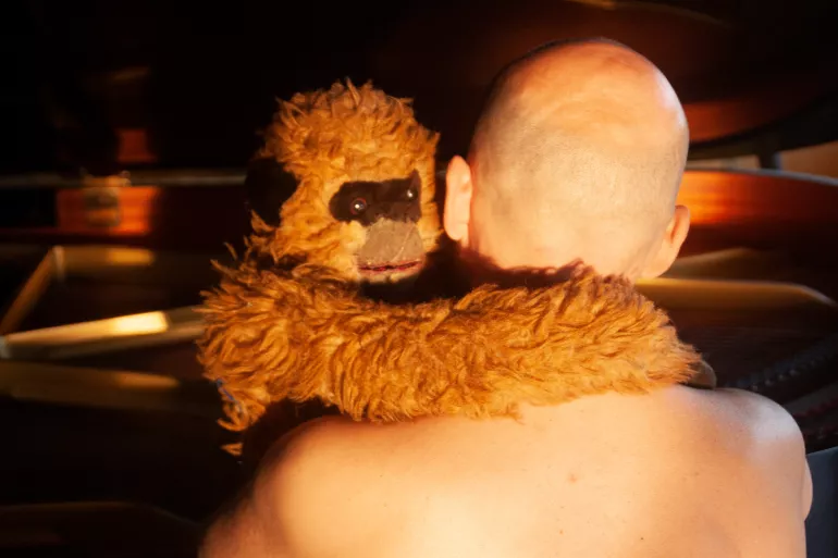Troisième et dernier volet de l’aventure intérieure de Monsieur Lorem Ipsum, Mise à nu navigue entre récital intime au piano et dialogue existentiel avec un Grand Singe animé, peluche et cyborg, beau parleur.
