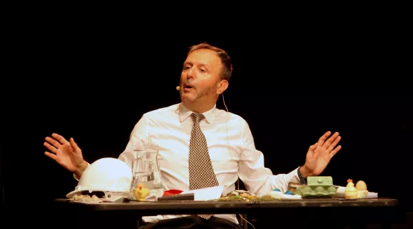 En effet, entre informations scientifiques et propos plus discutables, poule mouillée et chair de poule, cette pseudo-conférence investit à la fois le champ de l'absurde et de la métaphysique pour refléter par un regard aigu et décalé des problématiques très actuelles...
